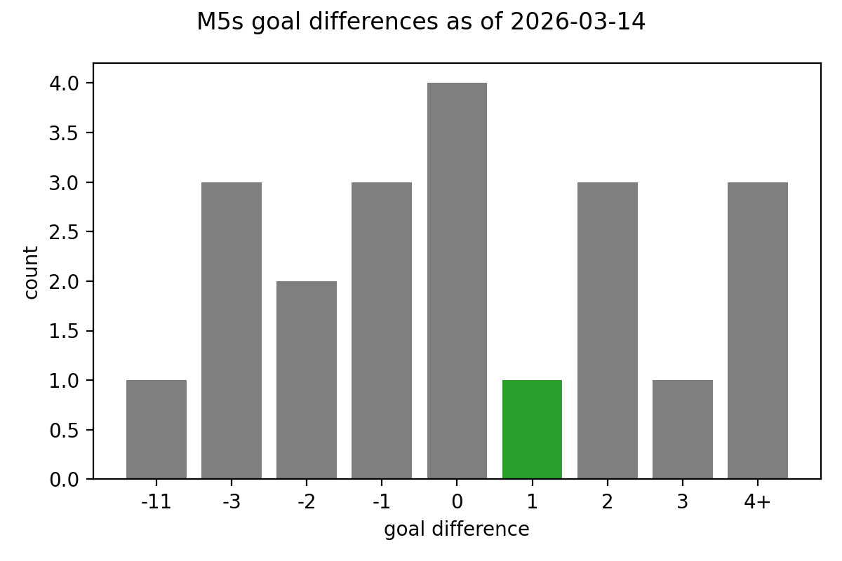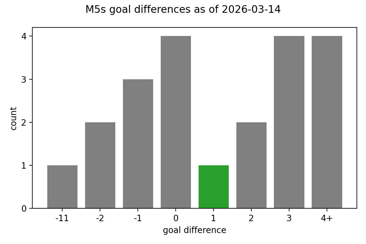So far this season the M5s have been quite good at winning by a good margin, or drawing, or losing by a small margin. It's been suggested that our strategy of conceding a couple of times before scoring our own goals makes it hard to turn around those missing tight victories, but for once we made it work.